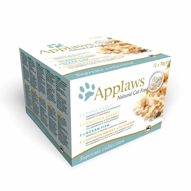 Flerpakning med kylling og fiskehermetikk i saus til voksne katter. Ekte smaker av 100 % naturlige ingredienser. Kompletteringsfôr for voksne katter. Sammen men fullfôret gir Applaws-hermetikken katten en allsidig og sunn kost