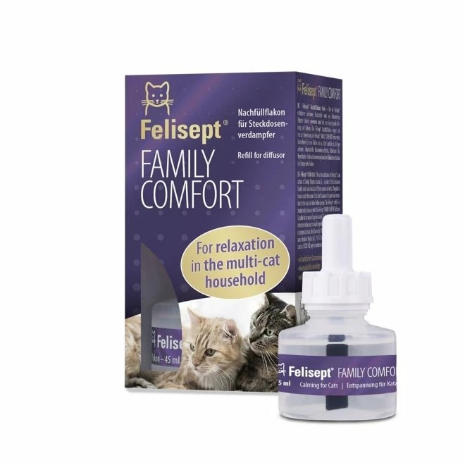 Felisept Family Comfort er en duftspreder med kattemynte. Man kan enkelt plassere duftsprederen i en stikkontakt, og duften av kattemynte spres i rommet.