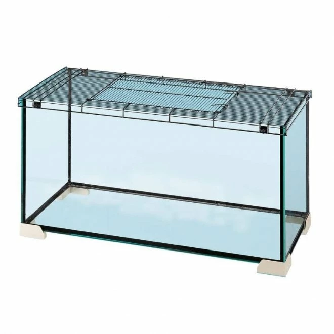 Glassbur, spesielt tilpasset ørkenrotter. Buret gjør det mulig å tilfredsstille ørkenrottens naturlige behov.