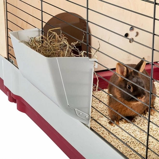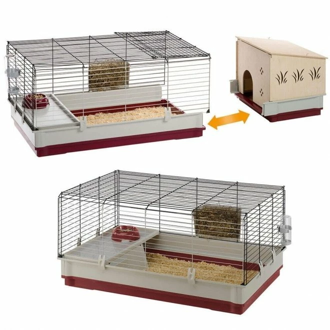 Ferplast Krolik er en serie romslige og praktiske kaninbur i forskjellige størrelser og farger. Burene er enkle å rengjøre og gir god plass til kaniner, marsvin eller rotter (spesielt hannrotter). Burkassen og gitteret på alle Krolik-burene kan demonteres helt. Praktisk tilbehør som plasthytte med en matskål, en skillevegg med trinn, vannflaske og en beholder til høy medfølger. Ferplast tilbyr også annet tilbehør og tilleggsmoduler med separasjons-gjerde (for parring), slik at buret blir perfekt for akkurat din kanin!