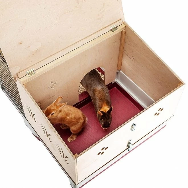 Selv om Krolik-burene gir kaninen din stort boareal, er høyden kun 50 cm, noe som betyr at de kun er optimale for kaniner opp til 2 kg. Burkassen er veldig lettvind i bruk og den er enkel å rengjøre, takket være døren som kan åpnes i fronten. Krolik-burene er enklere å montere/demontere ved hjelp av enkle klikk-på-kroker.