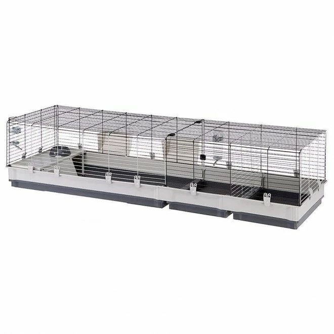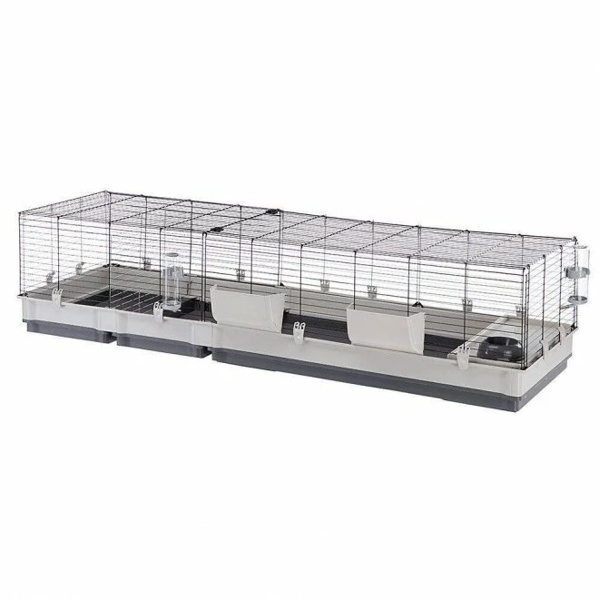 Ferplast Krolik er en serie romslige og praktiske kaninbur i forskjellige størrelser og farger. Burene er enkle å rengjøre og gir god plass til kaniner, marsvin eller rotter (spesielt hannrotter). Burkassen og gitteret på alle Krolik-burene kan demonteres helt. Praktisk tilbehør som plasthytte med en matskål, en skillevegg med trinn, vannflaske og en beholder til høy medfølger. Ferplast tilbyr også annet tilbehør og tilleggsmoduler med separasjons-gjerde (for parring), slik at buret blir perfekt for akkurat din kanin!