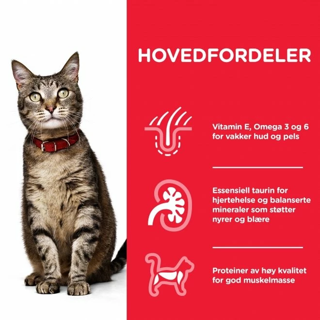 Hill’s Science Plan Adult Lamb er et næringsrikt kattefôr som er utviklet for å holde voksne katter i god form. Et komplett og balansert fôr som inneholder alt katten behøver for å holde seg sterk, frisk og fornøyd. Inneholder Hill’s Superior Antioxidant Formula som bidrar til å styrke kattens immunsystem. Fôret inneholder tilsatt taurin som bidrar til å opprettholde en normal hjerte- og øyefunksjon. Med en regulert mengde fosfor som bidrar til friske nyrer.