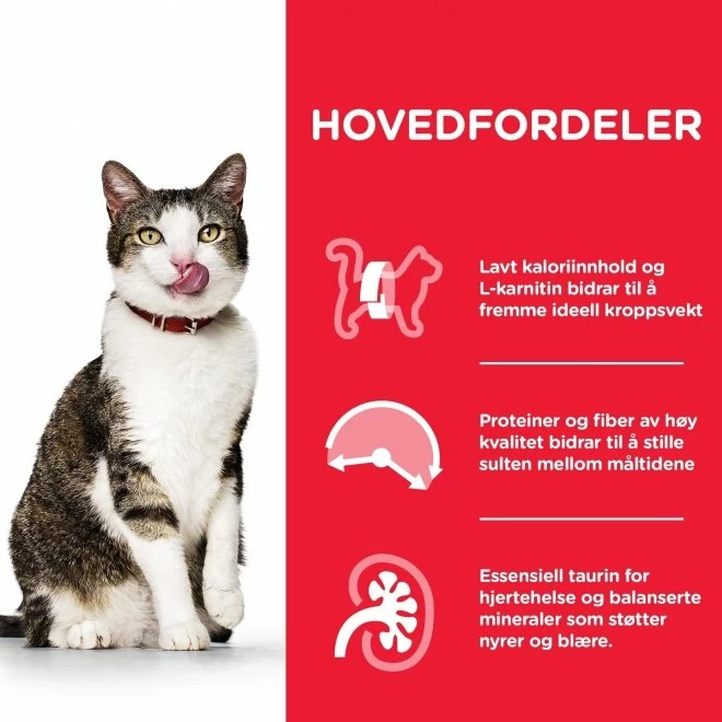 Hill’s Science Plan Light Mature Adult 7+ med smak av kylling er et kattefôr som er tilpasset for eldre katter som kan ha vektproblemer. Fôret inneholder alt som en eldre katt behøver for å holde seg sterk, livlig og i form med færre kalorier og mindre fett. Med tillegget av Hill’s Superior Antioxidant Formula gir fôret et perfekt grunnlag for generell helse.