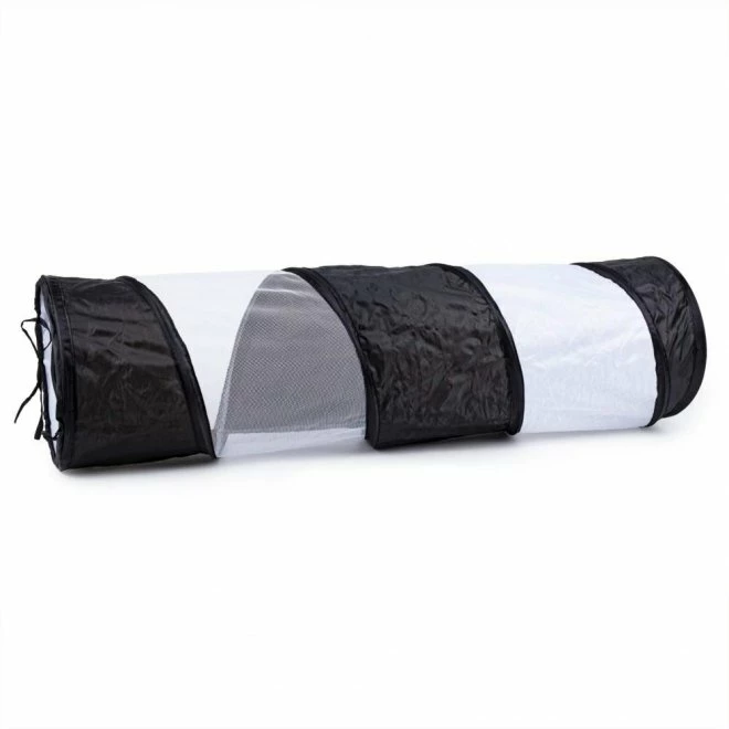 Denne leken kommer din katt til å elske. Den sammenleggbare tunnelen er lagd av forskjellige materialer som gjør den ekstra spennende. Tunnelen kan være rett eller bøyd, og kan enkelt legges sammen for å oppbevare den. Størrelse: 25 cm i diameter – lengde (rett): 90 cm.