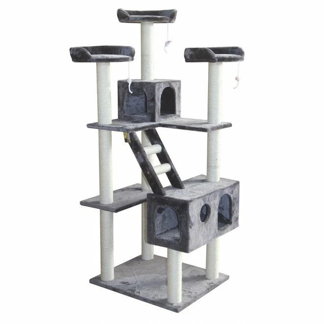 Hvis du har flere katter er Pavo kloretre det perfekte møbelet til hjemmet ditt. Kloretreet har en rekke kriker og kroker for katten til å leke seg i og til og med tre stabile køyer høyt over gulvet. Dette gjør treet egnet for katter som gjerne ligger og holder oppsyn over sine omgivelser. Selv om Pavo inneholder alle disse nivåene, og det tar ikke mer plass enn 70x60cm med gulvplass. Kloretreet er laget av solide sponplater, sisalrep og koselig, innbydende teddytekstil. Mål: 70x60x185cm