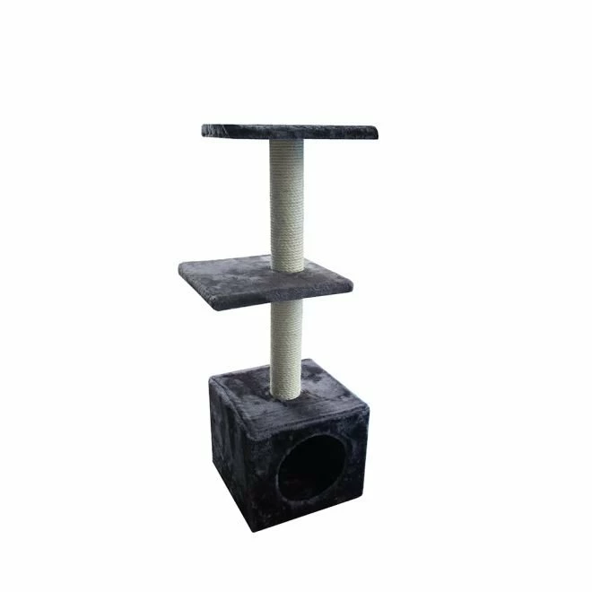 Pisces kloretre passer for katter som gjerne ligger og hviler med oversikt over omgivelsene. De tre nivåene gir katten plass til å variere etter humør. Det laveste nivået er en hytte der katten kan få være i fred og gjemme seg. Kloretreet er produsert av surret sisaltau, stabile sponplater og mykt, innbydende teddystoff. Mål: 30x30x89 cm