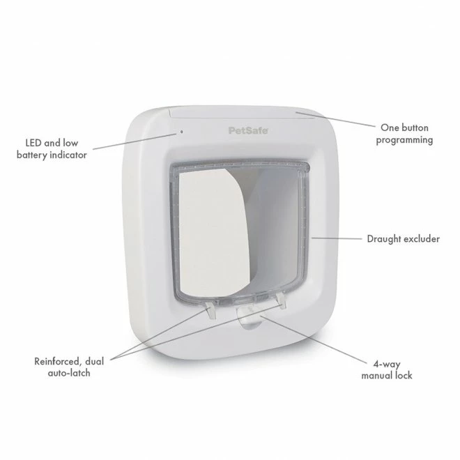 Med sin avanserte selektive teknologi er PetSafe® Microchip Cat Flap kattedør designet for å la katten din enkelt komme inn og ut samtidig som den holder andre dyr ute av huset ditt.