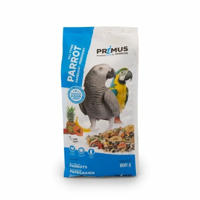 Primus frøblanding er høykvalitets fullfôr for papegøyer! Primus frøblanding er laget av nøye utvalgte ingredienser og sikrer fuglen balansert ernæring. Frøblandingen inneholder alle viktige mineraler og vitaminer. Produktet er pakket i lufttett emballasje for å sikre at det beholder sin friskhet. Pakningsstørrelse: 800 g. Ingredienser: frø, kli, vegetabilske derivater, mineraler, vegetabilske proteinekstrakter, oljer og fett.