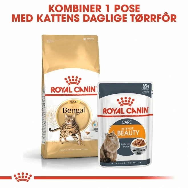 Bor du sammen med en lekeglad dyrevenn med en fantastisk pels? Den delikate kattematen fra Royal Canin er spesielt laget for bengalens behov: