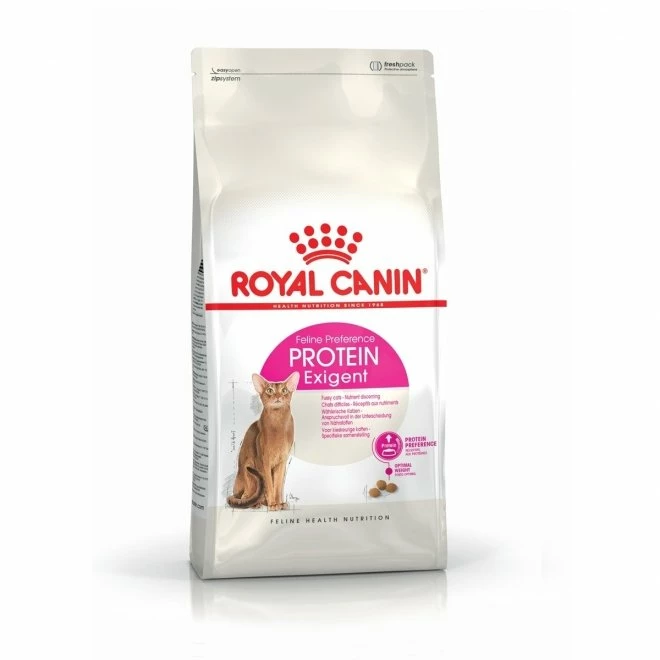 Royal Canin Exigent Protein Preference er et fullfôr utviklet for ekstra kresne voksne katter (12 md – 10 år gamle), med et balansert fett-, protein- og karbohydratinnhold som tilfredsstiller næringsbehovene også hos kresne katter. En unik sammensetning av næringsstoffer som har god virkning på pelsen. Det lave energiinnholdet hjelper katten med å holde idealvekten.
