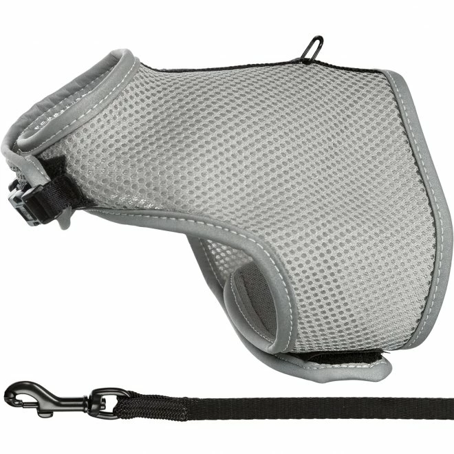 En myk sele med elastisk tilhørende kobbel. Tilvirket av pustende stoff og nylon som er skjønt for katten. Selen er bekvem takket være den myke stoppningen og er helt justerbar ved brystkassen og magen. Kommer i usorterte farger.